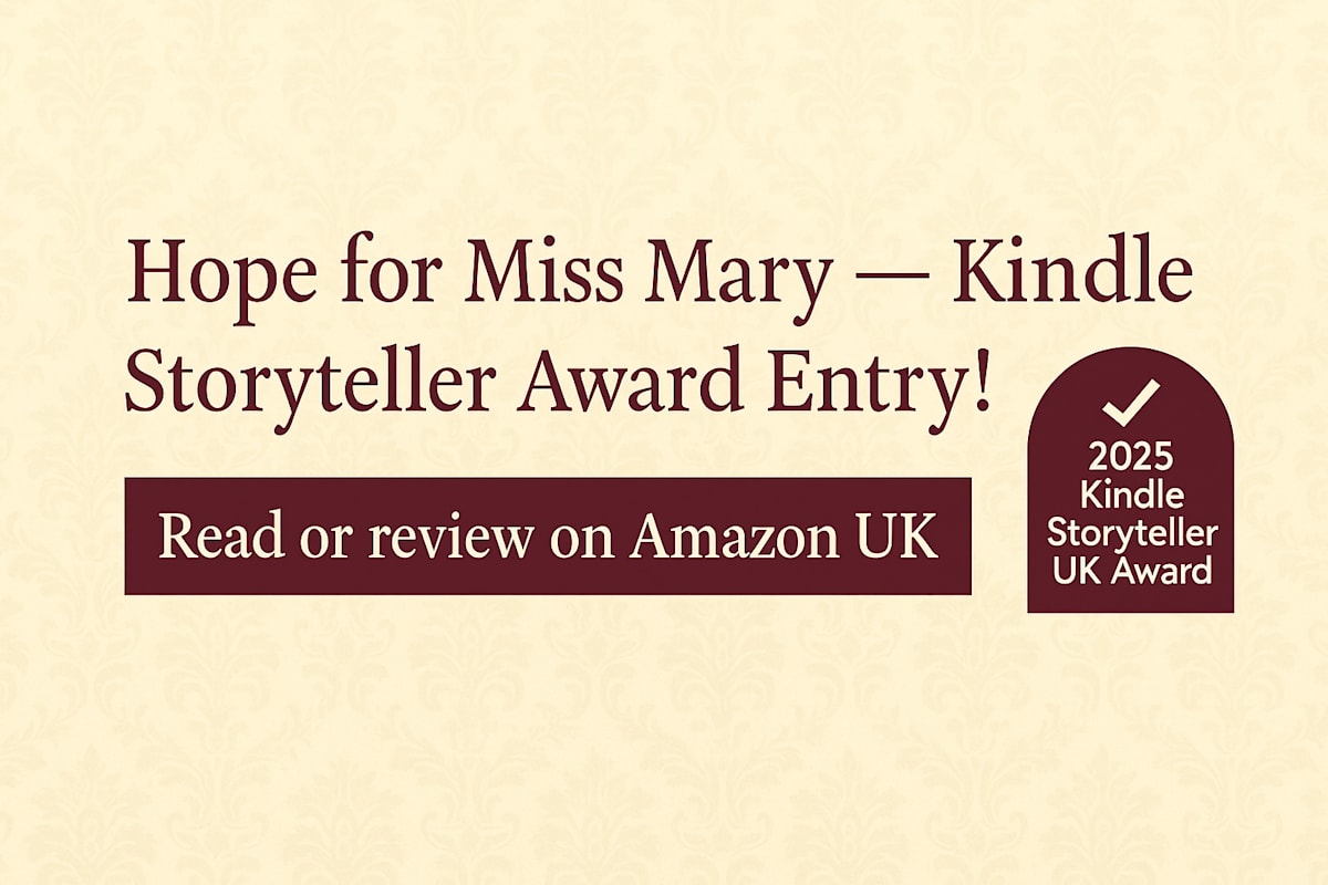 Hope for Miss Mary, the second book in the Hope Series, has been officially entered into the 2025 Kindle Storyteller UK Award.